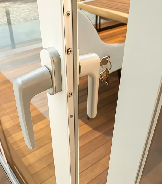 Schönes Design und optimale Sicherheit gehen Hand in Hand bei diesem Seitenschloss und Mittelschloss. Diese cleveren Schließsysteme bieten eine stabile Verriegelung, die ein beruhigendes Gefühl der Sicherheit vermitteln.